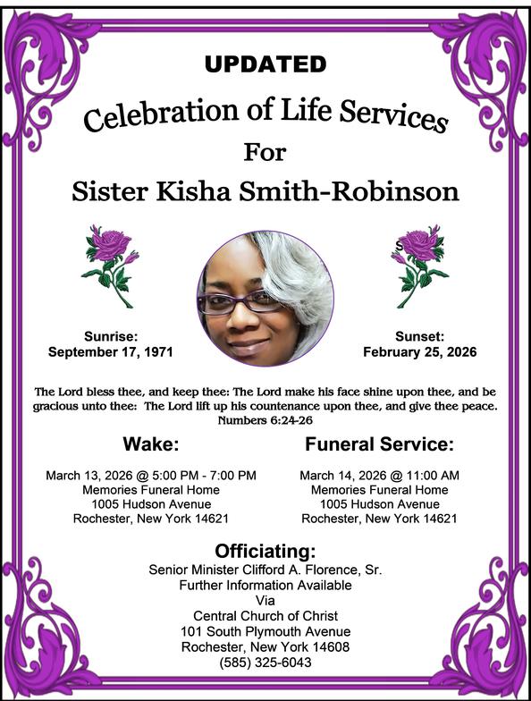 We are especially thankful to Minister Jones and the North Greece Congregation, whose kindness and hospitality made it possible for us to come together in remembrance and worship. Your servant hearts truly glorified the Lord and comforted all who attended.